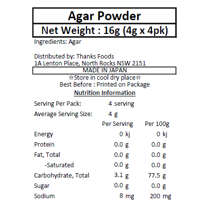No calories and high in fibre, Agar powder not only makes satisfyingly delicious desserts but is also a great dietary aid.