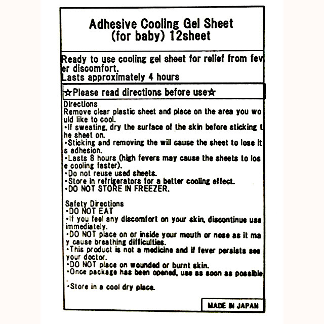 Instant Fever Relief Gel Sheet for infant to toddler (0-2yo) 熱さまシート 赤ちゃん用 (0-2歳向け) 12pc