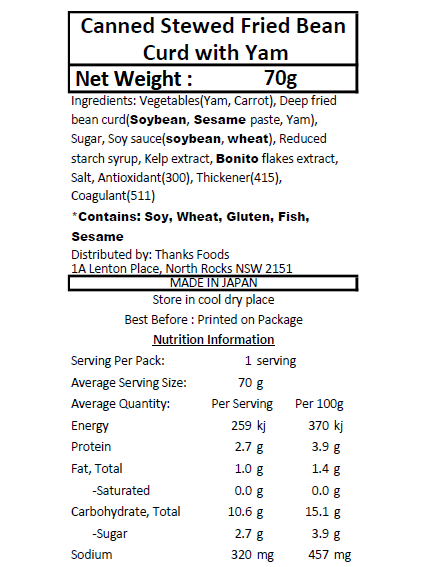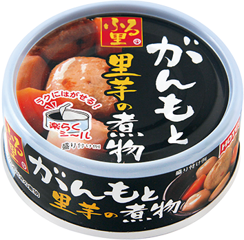 ジューシーながんもと柔らかな食感のさといも、色鮮やかな人参の入った和惣菜缶詰。開けやすいフィルムタイプの蓋「楽らくシール」を採用しています。